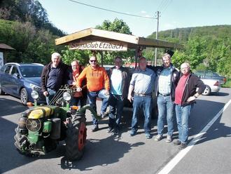 Ihr Gefährt war ein Traktor mit einem Anhänger, der ein waschechtes Boot auf sich trug. Die knapp sechs Meter lange Jolle hat bis vor wenigen Jahren noch ihren Dienst auf dem Chiemsee, der auch Bayerisches Meer genannt wird, geleistet. Dann verbrachte man sie nordwärts nach Breitscheidt. Fachgerecht auf einem Anhänger montiert und mit Sitzbänken versehen, dient das hölzerne Boot inzwischen als eine Art „Ausflugsdampfer“. Auch der überdachte Wagen mit Einachserantrieb aus Etzbach hatte am Donnerstag den Weg nach Hahnhof gefunden. An Bord befand sich, wie zu lesen ist ist, ein Saunaclub. Die Herren waren bester Laune und traten am späten Nachmittag den Heimweg mit ihrem originellen Gefährt an. (bt)