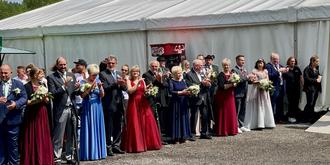 Der Hofstaat rund um Schützenkönig Matthias Zart wartet auf den Einmarsch der Festumzugsteilnehmer.