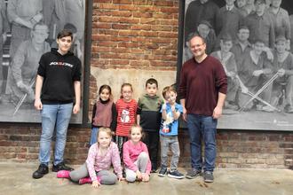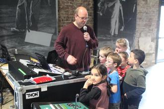 Der zweite Besuch galt dem kulturWERKwissen in der Walzwerkstraße 22. Dort übernahm der Geschäftsführer Dominik Weitershagen mit Unterstützung des Praktikanten Michel Kratz, die Führung durch das Gebäude. Im Sitzungssaal erfuhren die Kinder anhand von Anschauungs- und Film/Fotomaterialien, die Geschichte vom kulturWERK. So staunten die Kinder über Werkzeuge, Schutzkleidung und fertige Endprodukte. In der großen Halle durften die Kinder eine Runde mit der Scherenbühne fahren. Am Mischpult erklärte Herr Weitershagen die Lichtanlage und zauberte unterschiedliche Farbtöne auf der Bühne, an der Decke und an den Wänden. Das Highlight für die Kinder war die große Showbühne mit einem Monitor, auf dem sich die Kinder selbst beim Tanzen beobachten konnten, sowie die Nebelmaschine und die unterschiedlichen Lichteffekte.