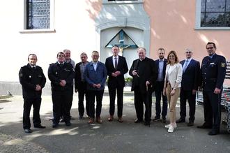 Am Freitag (26. Mai) kam hoher Besuch in die Siegstadt. Innenminister Michael Ebling wollte sich ein Bild vom Zustand der Kirche machen.Begleitet wurde Ebling von den heimischen Abgeordneten Sabine Bätzing-Lichtenthäler und Dr. Matthias Reuber. Von der Feuerwehr waren der Wehrführer des Löschzuges Wissen David Musall sowie der Wehrleiter Stefan Deipenbrock erschienen.