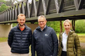 In seiner Begrüßung ging Berno Neuhoff auf die Bedeutung der Brücke ein. Er dankte besonders Uwe Hennig, der trotz Ruhestand die Baubetreuung übernommen hatte. Die Brücke, so Neuhoff, konnte schneller gebaut werden als in unserem Land üblich. Begonnen hatte die Planung im Jahr 2017 und nach nur acht Jahren steht die neue Brücke, nach nur einem Jahr Bauzeit. Besonders begrüßte der Bürgermeister Nicolaus Graf Hatzfeldt, dessen Schloss in direkter Nachbarschaft der Brücke steht. Uwe Hennig erläuterte die wichtigen Vorschriften, die eingehalten werden mussten. Hierzu zählen unter anderem der Hochwasserschutz sowie die verschiedenen Naturschutzrichtlinien. Matthias Reuber (MdL) ging in seiner kurzen Rede darauf ein, dass diese Brücke erst dann ihre volle „Wirkung“ entfalten könne, wenn das Nadelöhr in Etzbach endlich erledigt sei.