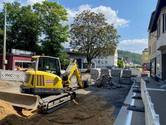 Die Bauarbeiten an der Rathausstraße sollen bis Ende August fertig sein. In den Sommerferien soll dann der neue Oberflächenbelag auf Kosten der Firma repariert werden.