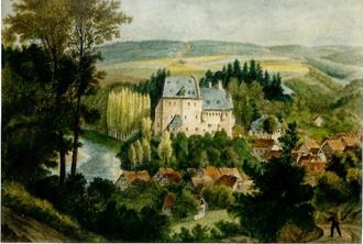 Das wenige und teure eingeführte Brotgetreide wurde mit Eicheln und Wurzeln gestreckt, Kartoffeln gab es nur sonntags. Der 1818 in Hamm/Sieg geborene Friedrich Wilhelm Raiffeisen gründete landwirtschaftliche Genossenschaften, um die Not der Bauern auf diese Weise zu lindern. Das Volk war jedoch reif zur Auflehnung, zumal von der Regierung keinerlei Unterstützung erfolgte. Der Amtmann der Standesherrschaft Schönstein floh über Nacht und der einzige Polizeibeamte vertauschte den Uniformrock mit einem blauen Kittel, um der Landwirtschaft nachzugehen. Auf dem Schulhaus wehte die Freiheitsfahne. Die Bauern vor Ort und im Siegtal waren „auf dem Laufenden“. Der Großvater des kleinen Karl Schmidt, damaliger Lehrer in Schönstein, geistiger Berater und Wortführer der allabendlichen Versammlungen im Schulsaal, bezog eine in Koblenz erscheinende Tageszeitung; somit war bekannt, dass von der notleidenden Bevölkerung in weiten Landstrichen eine Flut von Petitionen an den Vereinigten Landtag in Berlin gelangt war; folglich hatten 1847 auch die Bauern der Standesherrschaft Wildenburg - Schönstein eine Abordnung mit einer „Bedrückungsbeschwerde“[3] nach Berlin entsandt, wo der König die Beschwerdeführer (Bauern, Landarbeiter und Pächter) persönlich empfing. Nun war in den Zeitungen zu lesen, wie der Reichsgraf Edmund von Hatzfeldt mit seinen Untertanen umsprang und alle Gesetze missachtete.