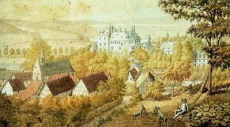 Blick vom Heister auf Schönstein mit Schloss Gemälde von Christian Hohe, 1852