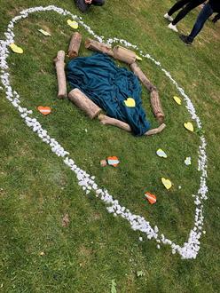 Zum Abschluss sammelten sich nochmals alle Familien und Erzieherinnen im Kreis und legten bei musikalischer Begleitung ein großes Steinherz. Ganz tief unten im Herz war auch die Antwort zu finden.