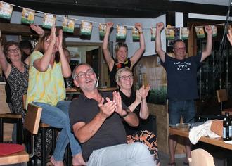 Doppelte Freude beim Wissener Ski-Club am später Samstagabend. Einmal natürlich über den deutschen Sieg in der Dortmunder Begegnung mit Dänemark und damit den Einzug ins Viertelfinale. Das Spiel wird auch deshalb in der Erinnerung bleiben, weil es buchstäblich aus Kübel schüttet und sogar unterbrochen werden musste. Weiter geht es am kommenden Freitag um 18 Uhr. Auch dann freut sich Vorsitzender Frank Stöver (re.) über viele Zuschauer vor der Großleinwand in der Brandeck-Hütte. Der Eintritt ist frei. Zum anderen freute man sich über das Feuerwerk anlässlich des Schönsteiner Schützenfests. Von der Höhe aus ließ sich das bunte Spektakel nämlich ganz gut beobachten. Vereinzelt gab es sogar Beifall von den Fussballfreunden. (bt)