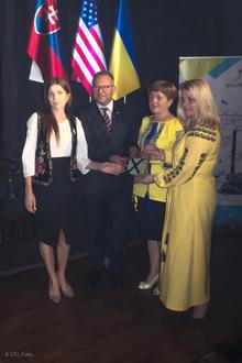 Mitglieder der ukrainischen Delegation aus Wissen mit Bürgermeister Andrzej Kasiura (zweiter von rechts)