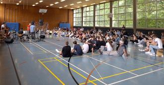 Am Freitag, dem 29.06.2023, versammelten sich alle neunten und zehnten Klassen des Kopernikus-Gymnasiums Wissen in der Turnhalle, um die Jazzmusik der Band „Jazz-Messangers“ zu bewundern.