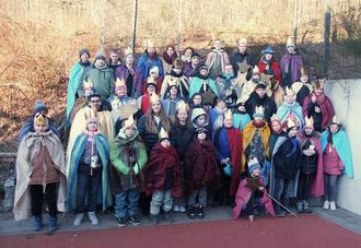 Bevor die gut drei Dutzend Kinder als Sternsinger von der Förderschule auf dem Wissener Alserberg aus zu den Häusern gingen, stand noch ein Gruppenfoto auf dem Programm.