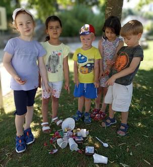 Bevor wir heute spielen konnten, haben wir erst einmal gemeinsam den Müll aufgehoben und entsorgt. Nach dem Motto: „Ob Groß, ob Klein, jeder soll ein Vorbild sein!“