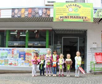 Am Mittwoch, den 09.07.2025, besuchten einige Kinder der Maulwurfgruppe aus der Kath. KiTa Adolph Kolping, gemeinsam mit ihren Erziehern, den syrischen Mini Market in der Marktstraße. Es gab ein großes Angebot an arabischen, syrischen und türkischen Lebensmitteln, frischem Obst und Gemüse, Süßigkeiten und Getränken, welche den Kindern unbekannt vorkamen. Sie stellten viele Fragen zu den fremden Lebensmitteln und Gemüsesorten. Eine Erzieherin fungierte als Übersetzer und sprach mit dem Verkäufer des Lebensmittelladens auf Arabisch. Dieser war sehr geduldig und hilfsbereit und beantwortete alle Fragen der Kinder und Erzieher*innen. Jedes Kind erhielt einen Lutscher als Geschenk und zum Abschluss durften sie selber verschiedene Produkte auswählen und an der Kasse bezahlen. In der KiTa wurde der Einkauf ausgepackt, alles noch einmal inspiziert und anschließend mit großem Hunger verzehrt.