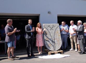 Natürlich durften an diesem Tag auch Geschenke nicht fehlen. Michael Rödder vom gleichnamigen Straßenbauunternehmen aus Wissen, dessen Wurzeln in Katzwinkel zu finden sind, überreichte das Katzwinkeler Ortswappen in Naturstein, nach alter Handwerkstradition gestaltet. Hierfür, so Hubert Becher glücklich, wolle man nun einen geeigneten Standort finden.
