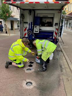 Unabhängiger Fachgutachter aus Neuwied entnahm die Kernbohrungen in der Wissener Rathausstraße und verfüllte die Bohrlöcher wieder mit Bitumen