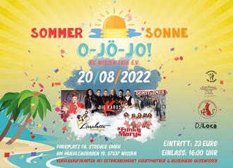 Die Sommer-Sonne-O-Jö-Jo-Party findet auf dem Gelände Im Mühlengraben 19 (Brückhöfe), 57537 Wissen (auf dem hinteren Parkplatz der Firma Stöver) statt. Der Eintrittspreis beträgt 23 Euro. Einlass zur Party ist ab 16 Uhr.