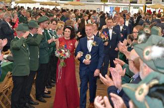König Martin I. Leidig und seine Königin Francesca Rosada beim Einmarsch in das Festzelt Foto: Markus Döring