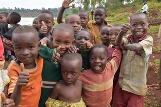 Kinder in Ruanda freuen sich über die Errichtung einer Schule, die Fly&Help aus Erlösen des Bazars mitfinanzieren konnte.