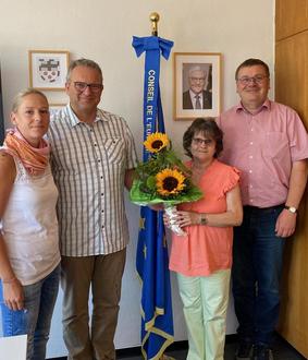 v.l.: Christina Kipping (Personalrat), Bürgermeister Berno Neuhoff, Ulrike Lemler, Klaus Becher (Büroleiter)