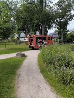Ein echtes Highlight war in diesem Jahr der Besuch der Feuerwehr Schönstein, die mit einem großen Löschfahrzeug vorfuhr. Viele Kinder nutzten die Gelegenheit, das Fahrzeug aus nächster Nähe zu erkunden und Fragen zu stellen.