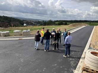 Hinzu kommt noch der Aufbau der Straßenbeleuchtung. Im Sinne von Einsparpotentialen, sowohl energetisch als auch monetär, hat sich der Ortsgemeinderat entschlossen, statt elf lediglich neun Lampen aufzustellen, die jedoch durchaus ausreichen würden, berichtet Ortsbürgermeister Hubert Becher im Zuge einer Baustellenbesichtigung unter anderem mit ausführenden Baufirmen, den Verbandsgemeindewerken und dem Wissener Bauamt.
