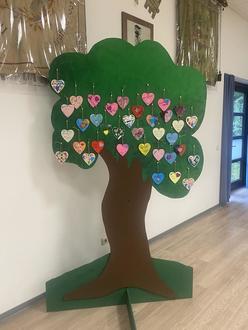 Highlight war der Generationenbaum, an den jeder ein selbst gestaltetes Herz aus Holz hängen durfte und der bei jedem Treffen mit weiteren Herzen geschmückt wird.