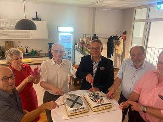 Waldtraud Hamann hatte eine leckere Jubiläumstorte gebacken, die gemeinsam angeschnitten wurde.