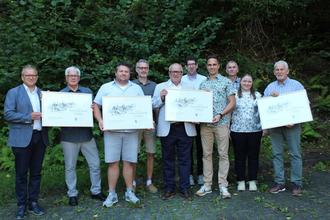 Die Sektkorken hatten bereits im Mai geknallt, nun folgte die offizielle Siegerehrung mit Urkundenübergabe: Landrat Dr. Peter Enders hat am Wochenende im Rahmen des Mehrgenerationenfestes in Selbach die erfolgreichen Ortsgemeinden des diesjährigen Wettbewerbs „Unser Dorf hat Zukunft“ (Kreisentscheid) ausgezeichnet: Dabei hatte Selbach bei der Jury - bestehend aus Oliver Weber, Elena Schäfer, Jennifer Siebert, Sabine Kämpf und Olaf Riesner-Seifert - die meisten Pluspunkte gesammelt und war auf Platz 1 gelandet, gefolgt von Ziegenhain, Katzwinkel und Fürthen.