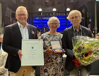 Eine riesengroße Stütze hatte Maria Bastian-Erll in all den Jahren in ihrem Mann Hans Erll. Er machte sich gemeinsam mit ihr auf den Weg, Bücher auszutragen, aber auch kräftig mitzuorganisieren und nicht zuletzt Stühle zu schleppen, um so der beherzten Buchhändlerin und Literaturverbundenen stets den Rücken freizuhalten. Damit erhalte Maria Bastian-Erll das große Ehrensiegel der Stadt Wissen auch für ihren Mann Hans und ihre engagierte "Kultur-Ehe", in der die Kultur, der Buchladen, die Wissener EigenArt und die Westerwälder Literaturtage stets ein Hauptbestandteil des täglichen Lebens gewesen waren und noch seien, machte Neuhoff deutlich.