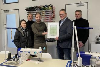 Neben der Überreichung der Gratulationsurkunde wünschen Neuhoff, Noß und Rödder dem Geschäftsgründer viel Erfolg und viel Kundschaft. Die Schneiderei ist von Montag bis Freitag von 9 bis 18 Uhr und an Samstagen von 9 bis 14 Uhr geöffnet. (KB)