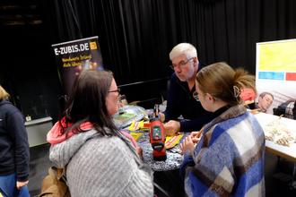 Und das bestätigten die vielen jungen Besucher. So berichtete Nina, sie besuche gerade die 10. Klasse. Auf der ABOM habe sie genau die richtigen Ansprechpartner gefunden, um sich über ihren Berufswunsch der Erzieherin zu informieren. Maksim (14) hingegen weiß noch gar nicht so genau, wo es ihn beruflich hinzieht und bestätigt: "Die ABOM zeigt mir, die Möglichkeiten auf, bis hin zum Dualen Studium“. Ebenfalls unter den jungen Gästen zu finden war die 22-jährige Sophie. Sie hat bereits ein Ausbildung gestartet, möchte sich aber gerne noch einmal umorientieren. Hier habe sie die Möglichkeit, sich über andere Berufsbilder und weitere Chancen zu informieren. Neben den Infoständen im und um das Kulturwerk gab es im Foyer zudem die Möglichkeit, sich an der Lehrstellen- und Studienbörse über aktuelle Berufsangebote und offene Stellen ein Bild zu machen.