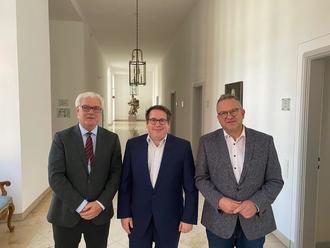 von links: Ortsbürgermeister Hubert Becher, Katzwinkel, ADD-Präsident Thomas Linnertz, Bürgermeister VG und Stadt , Berno Neuhoff , Wissen waren heute im Trier im Kurfürstlichen Palais, Sitz der ADD Tier um über die Schulbezirksänderung zu sprechen.