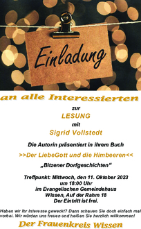 Gerne laden wir auch am Dienstag, 17. Oktober um 15.00 Uhr zum Frauenkreis nach Hövels ein.