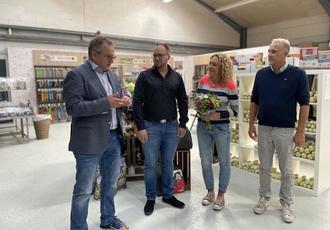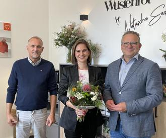Blumen gabs zur Neueröffnung. Von links: Ulrich Noß, Natascha Sadoski und Berno Neuhoff.