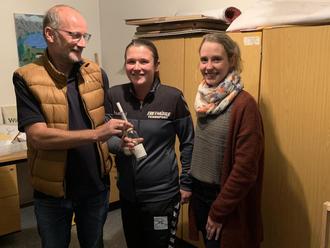 Andreas Brucherseifer-Escher und Franziska Sauer vom Jahrmarkt Wissen e.V. überreichten Julia Diefenbach (Mitte) den 1. Preis der Tombola - eine Reise nach Kreta.