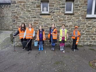 Sechs junge Umweltschützer folgten der Einladung (Marlene, Milena, Mira, Felix, Solomiia und Svea). Gemeinsam zogen sie, mit Warnwesten, Müllgreifern und Eimern ausgestattet, in zwei Gruppen los und sammelten allerlei Müll auf. Die tolle Aktion endete mit einem kleinen Imbiss. Alle hatten viel Spaß und waren sich einig, dass sie das Treffen gerne wiederholen möchten. (Marlene Grohs)
