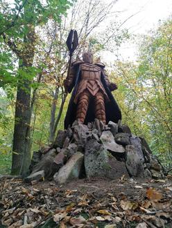 Mit Sauron ist Wolfgang Greb das vielleicht authentischste Mittelerde-Werk gelungen. Zwei Monate hat der Kettensägenkünstler daran gearbeitet, aus einem Eichenstamm dieses beeindruckende Kunstwerk herauszuarbeiten. Als Vorlage dienten ihm dabei nicht nur Bilder; um die räumliche Darstellung besser zu verstehen, bestellte er sich extra eine Spielzeugfigur.