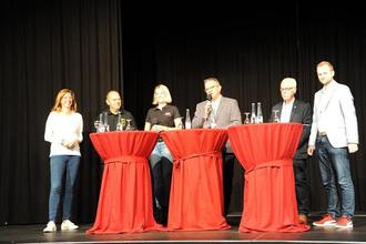 Bei der Podiumsdiskussion wurde über die Zukunft der Vereine diskutiert. (v. l. Sabine Bätzing-Lichtenthäler, MdL, Horst Steiger - Bergkapelle Vereinigung, Sabrina Franken - Vorstandsmitglied DJK Wissen-Selbach, Bürgermeister Berno Neuhoff, Karl-Heinz Henn (Schützenverein Wissen) und Dr. Matthias Reuber, MdL