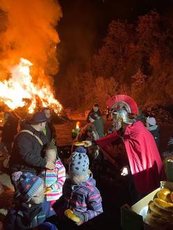Dort angekommen begeisterte das große Martinsfeuer nicht nur die jungen Besucher und so konnte Sankt Martin in bester Atmosphäre rd. 300 Brezeln an die Kinder und Jugendlichen verteilen.