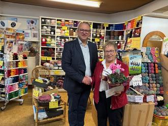 Einen runden Geburtstag konnte Heidemarie Grutzeck feiern. Seit 40 Jahren betreibt sie in der Wissener Gerichtsstraße ihr Geschäft. Anlässlich des Martinsmarktes ludt sie die Kunden sowie Bürgermeister Berno Neuhoff zu einem kleinen Umtrunk ein. Das Geschäft betreibt sie im Nebenerwerb. Hauptberuflich arbeitet die gelernte Steuerfachgehilfin in einem größeren Steuerbüro in Gebhardshain. Die Kundschaft reicht von jung bis alt und die hochqalitativen Waren stammen aus Italien oder Deutschland. Mit einem Schäfer auf der schwäbischen Alb, der sie mit Wolle beliefert, hat sie seit Jahren eine feste Partnerschaft.