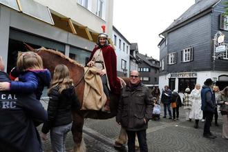 Ein Highlight und ein Alleinstellungsmerkmal ist seit vielen Jahren der Besuch des St. Martin auf dem Markt. Auch hierbei kam der „heilige Mann“, nicht nur mit den traditionellen Weckmännern für die Kinder, sondern hoch zu Ross und zeigte sich den Besuchern bereits vor dem traditionellen Martinszug. Der Andrang, besonders von den kleinen Besuchern war wie immer, riesengroß. Die Teilnahme mit Pferd ist einer der Punkte, warum der Martinsmarkt Wissen immer wieder viele Besucher anlockt. Das, so Kölschbach, gibt es nur hier auf unserem Markt.