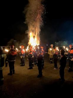 Das große Martinsfeuer auf dem Schützenplatz stand auch in diesem Jahr unter der Aufsicht freiwilligen Feuerwehr Wissen.