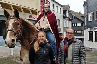 Ein Highlight und ein Alleinstellungsmerkmal ist seit vielen Jahren der Besuch des St. Martin auf dem Markt. Auch hierbei kam der „heilige Mann“ nicht nur mit den traditionellen Weckmännern für die Kinder, sondern hoch zu Ross und zeigte sich den Besuchern bereits vor dem traditionellen Martinszug. Der Andrang, besonders von den kleinen Besuchern war wie immer riesengroß. St. Martin mit Pferd ist einer der Punkte, warum der Martinsmarkt Wissen immer wieder die Massen anlockt. Das, so Kölschbach, gibt es nur hier auf unserem Markt.
