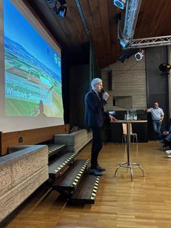 Im Anschluss stellten Joachim Schuh und Johannes Rudolph, Geschäftsführer der WSE, gemeinsam mit Julian Koch, Projektentwickler der EAM Natur Energie GmbH, den aktuellen Planungsstand und den vorgesehenen Zeitplan vor. Da sich das Projekt noch in einer frühen Phase befindet, sind die technischen Details noch nicht fixiert. Nach dem derzeitigen Planungsstand sind bis zu 7 Windenergieanlagen mit einer Nennleistung von jeweils 6 - 7 Megawatt vorgesehen. Bürger können sich, voraussichtlich genossenschaftlich, am Windpark beteiligen.