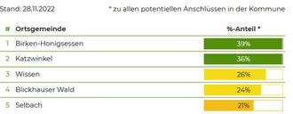 Speziell für die Ausbaugebiete in der Verbandsgemeinde Wissen sehen die Zahlen wie folgt aus: