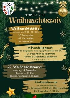 Rund um den traditionellen Weihnachtsmarkt am 14. Dezember 2024 am Backes/Dorfplatz in Elkhausen gibt es im Advent eine Reihe weiterer Veranstaltungen in der ehemaligen Bergbaugemeinde.