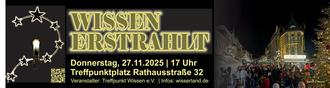 Organisiert von der Aktionsgemeinschaft „Treffpunkt Wissen“ läutet die Feier „Wissen erstrahlt“ am Donnerstag, 27. November ab 17 Uhr, die kommende Advents- und Weihnachtszeit auf dem Treffpunkt-Platz vor der ehemaligen Post, Rathausstraße 32, ein. Hierzu sind alle Bürger, sowie Gäste aus nah und fern herzlich eingeladen. Bei Musik und frisch gezapftem Bier, duftendem roten und weißen Glühwein, Punsch, leckerer selbst hergestellter vegetarischer Suppe und Bratwürsten mit Brötchen können sich die Gäste im netten Austausch auf die besinnliche Zeit einstimmen.