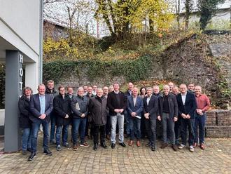 Die Mitglieder der Gremien sowie Mitarbeiter des WKA und der Stadtwerke Wissen GmbH vor dem Hotel Germania in Wissen.