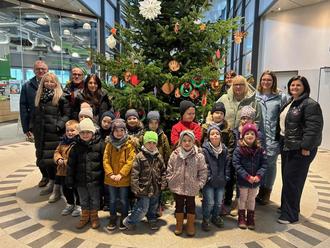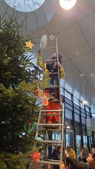 Auch in diesem Jahr wurde traditionell der riesige Weihnachtsbaum im Regiobahnhof von Kita-Kindern geschmückt.