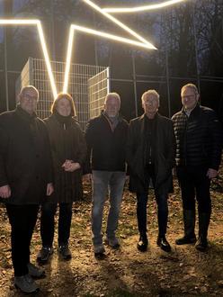 Die Beteiligten am Projekt „Weihnachtsstern“ waren zusammengekommen, um den neuen Stern erstmals anzuschalten.
