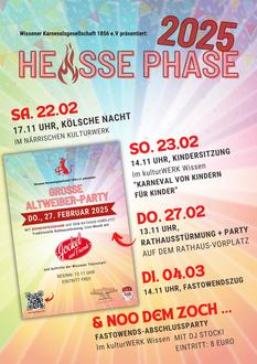 Seinen krönenden Abschluss feiert der Wissener Karneval mit seinem großen Fastowendsumzug: Am Veilchendienstag, 4, März 2025, heißt es wieder: „D’r Zoch kütt“. Freuen darf man sich sicherlich auch auf die große After-Zug-Party mit DJ Stocki im närrischen Kulturwerk. Bei kölschen Melodien und dem einen oder anderen Kaltgetränk können hier die Karnevalsjecken die Session ausklingen lassen. Der Eintritt kostet acht Euro.