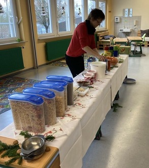 Die Nikolausüberraschung war jedoch nicht das einzige Highlight der Woche. Im Anschluss an den Nikolaustag, lud der Förderverein zu einem gemeinsamen gesunden Müslifrühstück der Schule ein. Die Kinder versammelten sich in der Frühstückspause zu einem gemütlichen Beisammensein, bei dem gesunde Lebensmittel im Mittelpunkt standen. So gab es eine beeindruckende Auswahl an Obst, verschiedene Müslisorten, Getreidemischungen, Milchprodukten und Säften vorbereitet, um den Kindern auch in der Adventszeit die Bedeutung einer ausgewogenen Ernährung näherzubringen.